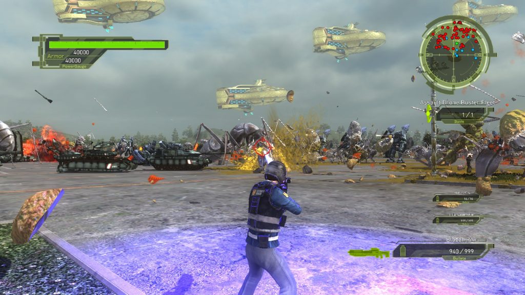 The game features four unique soldier classes: Ranger, Wing Diver, Air Raider, and Fencer—each with distinct abilities and gear. Missions range from open-field skirmishes to dense urban firefights, often against gigantic insects, robotic enemies, and massive alien beasts. Players can engage in solo play or join forces in online co-op mode for even more explosive encounters. The vast weapon selection and upgrade system encourage experimentation and replayability.